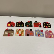 (10) Vtg Handmade Needlepoint Plastic Houses Canvas Homes Magnet Farmhouse Toy