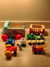 15 Piece Lot Vintage Fisher-Price Little People Milk Wagon Police Fire Bus Farm