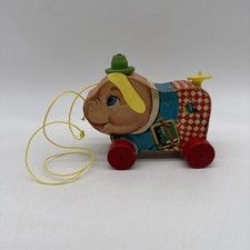 Vintage 1964 Fisher-Price Teddy Zilo Wooden Pull Toy Works Great! Wood Toys