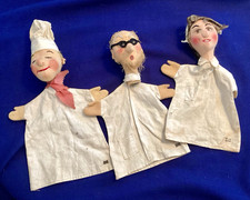 3 KERSA Nurse Doctor Chef Hand Puppet Germany 60s Vintage Felt Toy Theater AS IS