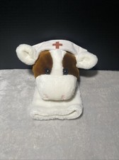 Vintage Dakin Plush Nurse Cow Hand Puppet 1990 White Brown Toy 11" Pretend Play