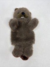 Vintage Hand Puppet Brown Beaver Plush Toy Animal 12" Moveable Arms