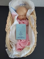 VTG. 1984 GABRIELLA GOO GOO KIDS SCULPTED NEWBORN BABY PUPPET, BLANKET & BASKET