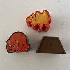 Vintage 1980s Chicco Gazoobo Color Shape Animal Sorter Toy - Red Brown Blocks
