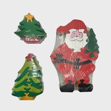 VTG Santa Claus and Evergreen Trees Lot Wood Jigsaw Puzzle Christmas Holiday Toy