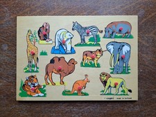 Vintage Simplex Wooden Peg Puzzle Jungle Animals Child's Toy - Made in Holland
