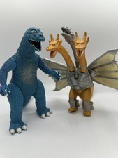 Vintage Godzilla Blue Hard Rubber Action Figure & Mecha King Ghidorah