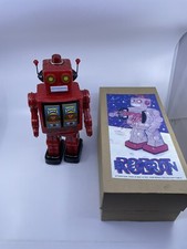 Vintage Orbit Taiwan Tin Retro Robot Walking Robot Tin Litho Wind Up Toy Box Exc