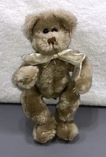 Vintage Ty Beanie Fuzz Teddy Bear Plush Toy Fuzzy Brown Classic Ribbon Collar