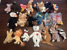 Vintage TY Beanie Babies Lot Of 21 , Rabbits, Birds, Bears Dogs, Animals