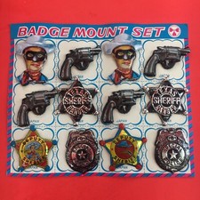 vintage COWBOY BADGE set--TIN LITHO japan - LONE RANGER deputy sheriff - NOS NEW