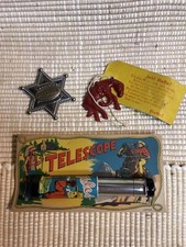 Vintage Tin Western child's Toy Telescope, cowboy & Indian novelty, JAPAN Lot