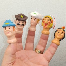 Finger Puppets Cowboy And Indian Lot of 5 Soft Rubber Vinyl Vintage Rare I12