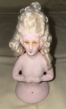 VTG ART DECO GERMAN HALF DOLL W/ BLONDE WIG BISQUE MAKEUP Pin Cushion