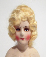 RARE 6" VTG 1920's ART DECO GERMAN HALF DOLL W/ BLONDE WIG BISQUE AMAZING MAKEUP