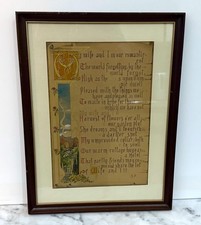 OLD FRAMED HAND PAINTED ILLUMINATED MANUSCRIPT POEM BY ROBERT LOUIS STEVENSON