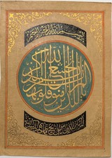 VINTAGE LOOK BEAUTIFUL HANDMADE ILLUMINATED ARABIC CALLIGRAPHY ART ON OLD PAPER.