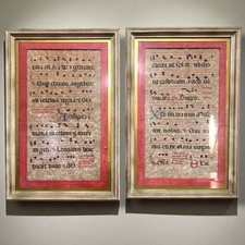 Pair Framed Illuminated Gregorian Chant Music Manuscript Pages Medieval Style