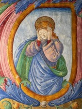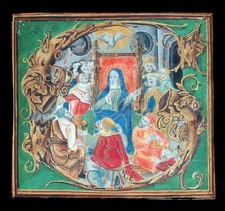 c. 1500 ILLUMINATED CHOIRBOOK INITIAL- PENTECOST - MASTER OF THE DARK EYES