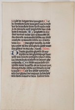 Circa 1450 Illuminated Manuscript Leaf Devotional Hours Vellum Rubricated Dutch