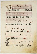 1632 POLAND ILLUMINATED MANUSCRIPT GREGORIAN CHANT MUSIC LEAF, DOMINICAN GRADUAL