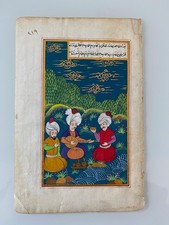 Antique Persian Illuminated Manuscript Double Sided Page Three Men Great Colors