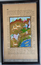 Antique Persian Islamic Illuminated Manuscript Miniature Painting Hunting Scenes