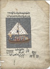 Illuminated Manuscript Arabic 1700s? Illustrated Story Sailing Ship Lost at Sea?