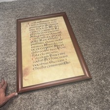 Large Illuminated Manuscript on Vellum 21” X 30” Red Letters Latin Framed