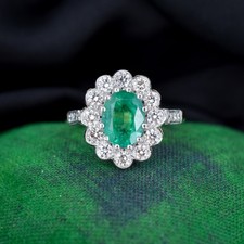 Emerald and Diamond Oval Cluster Halo 18ct Yellow Gold and Platinum Ring | Antiq
