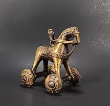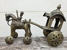 VTG Brass Indian Horse Temple Toy w/Rider on Wheels Ornate Reproduction 4.25"