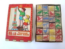 Full original Box of Vintage Child Toy Wood Blocks for Christmas decor display