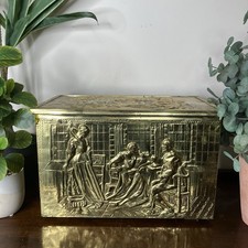 Vintage Lombard England Embossed Brass Fireside Storage Box Chest