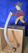 Vintage Folk Art Painted Metal Whirligig Boy spinning on Rails — Americana Toy