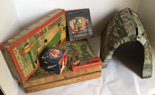 Vintage 5 Pc Marx Tin Litho Train Trunk Suitcase Luggage Metal Pick Up Truck Toy