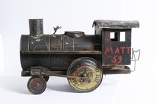 Vintage Wooden Model Toy Train. Antique Wood Steam Engine. Home Decor. c1930
