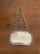 Antique Cherry Whiskey Silver Liquor Bottle Label Decanter Tag Cherry Bounce