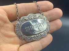 Hallmarked Sterling Silver Sherry Whisky Bottle Decanter Label Tag c1979