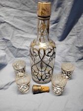 Art Nouvea Sterling Silver Overlay Whiskey Bottle Liquor Decanter/ Shot Glasses