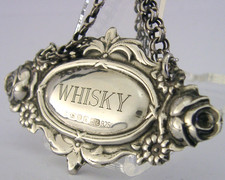 Vintage Sterling Silver Whiskey Bottle Decanter Tag Label