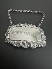 Vintage Sterling Silver Decanter Label WHISKY Birmingham 1965 Crisford Norris