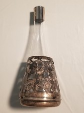ART NOUVEAU STERLING SILVER MEXICO OVERLAY WHISKY LIQUOR BOTTLE DECANTER GLASS