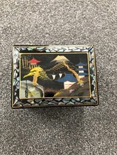 Vintage Japan Inlaid Inlay Marquetry Music Trinket Box