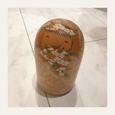 Wooden Kokeshi Music Box Doll Vintage Japan Natural Color Used