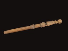 Antique ANTHROMORPHIC Carved Wood Figurative Pole DISTAFF with Rattle
