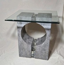 Vintage 80s Mid-century Modern Graphic Tessellated Granite Accent Table 27"x 29"