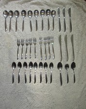 Set of 35 Mid Century Modern Stainless Flatware Japan Curved Handle Tips NICE