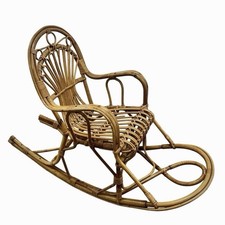 Vintage 1960s Italian Rattan Rocking Chair Mid Century MCM Boho Child Size