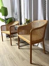 Authentic Mid-Century Modern WARD BENNETT CANE CHAIRS Original Tags Cushions Vtg