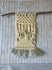 Vintage Mid Century Modern Macrame Wall Art Owl Bead MCM Atomic Retro Decor